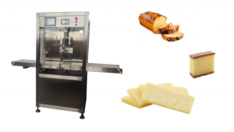 超声切割装置可以完成,即纵向产品矩形蛋糕上下切割。可以在控制面板控制切片厚度,可达毫米级别。例如蛋糕切片,把蛋糕在传送带上输送,在控制面板选择切割模式,设置切割厚度(毫米),机器会自动切割和计算蛋糕所到位置,然后切割蛋糕。