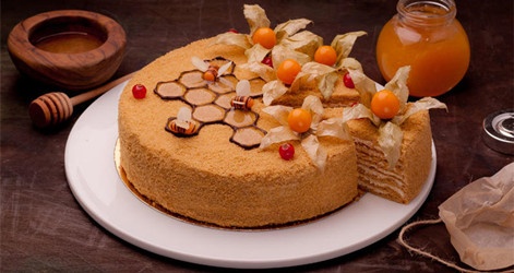 蜂蜜蛋糕是俄罗斯流行的,常见的是儿童派对准备。有时你可以看到它的名字叫“小蜜蜂”,“亲爱的”,“奇迹”或简单的“酸奶油蛋糕”。
